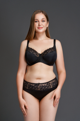 Бюстгальтер богатырь " минимайзер" ( по аналогии с 107630) с мягкой чашкой с боковой корректирующей деталью. Верхняя деталь выполнена из эластичного кружева на подкладке из неэластичного сетчатого полотна, нижняя и боковая корректирующая детали из функционального трикотажного полотна ламинированного хлопком. Ластовица из неэластичного Швы максимально плоско расстрочены. Стан выполнен из эластичного трикотажного полотна.