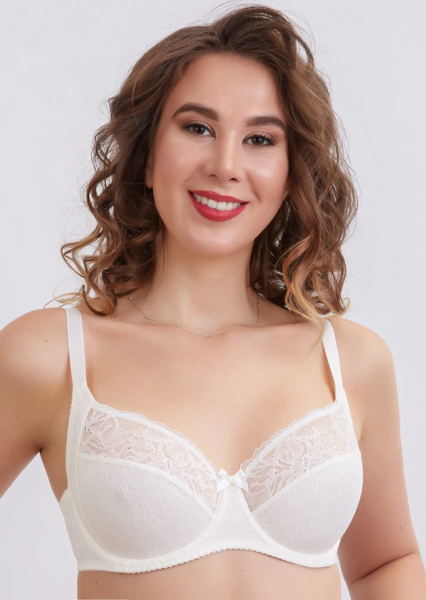 Бюстгальтер с мягкими чашками на каркасах. Выполнен из эластичного трикотажного полотна, кружевного полотна, ламинированного материала и не эластичного кружевного полотна. Чашки с боковой корректирующей деталью и хлопковой подкладкой.