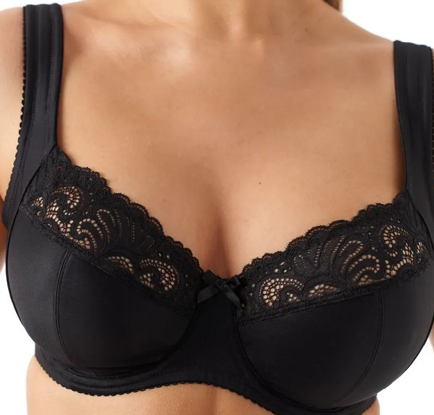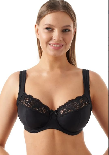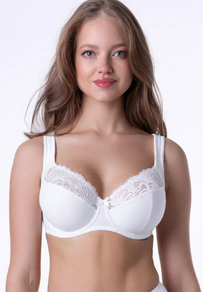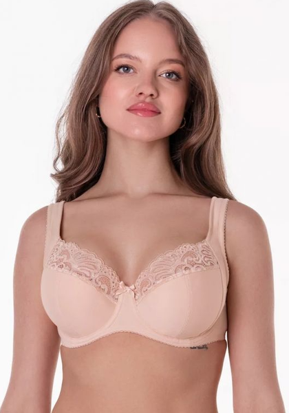 М'який бюстгальтер із мереживом 107730 Milavitsa. Бюстгальтер виконаний з еластичного трикотажного полотна та еластичного мережива. На каркасах. М'яка чашка з бічною коригувальною деталлю і бавовняною підкладкою. Широка дубльована бретель, регульована, незнімна.