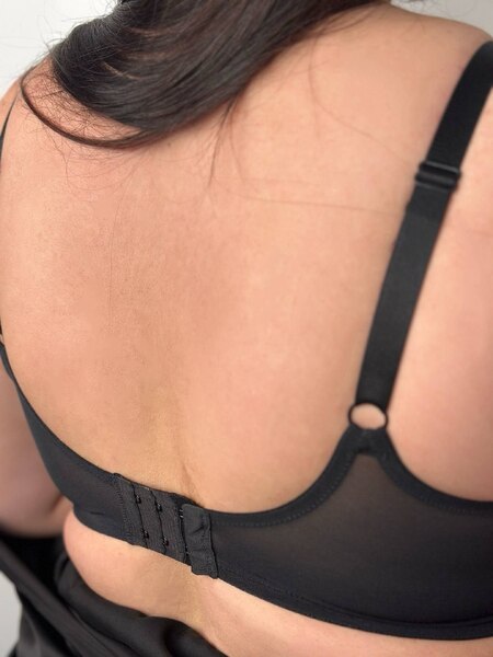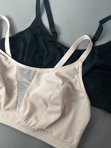 Ідеальний класичний безкаркасний бюстгальтер-топ, без підкладки. V-подібна сітка-вставка спереду. Регульовані бретелі. Чашки з подвійного нееластичного трикотажу. Зручний як для повсякденного життя, так і для занять спортом.