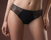 Трусики слипы со средней линией талии выполнены из эластичного трикотажного полотна, эластичного сетчатого полотна. Украшены кружевом.