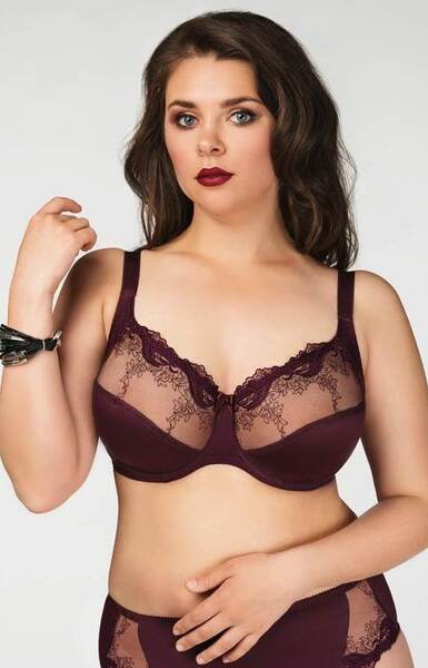 Бюсгальтер на каркасах, верхняя деталь чашки из кружева, вышитого на сетке, нижняя деталь на х/б подкладке.