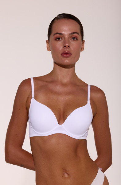Бюстгальтер пуш-ап из эластичного трикотажного полотна. На каркасах. Жесткие формованные чашки. Съёмные бретели. Отделка - бантик.