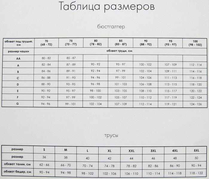 Размеры - 70 ВС, 75 ВСD, 80 BCD, 85 BC