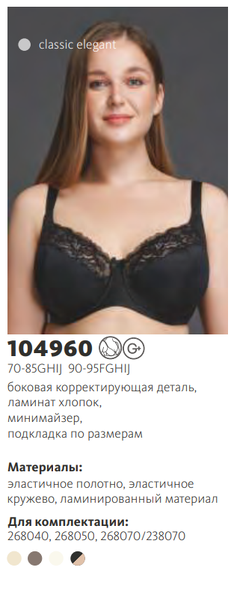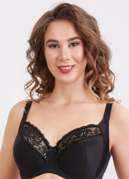 Бюстгальтер богатырь " минимайзер" ( по аналогии с 107630) с мягкой чашкой с боковой корректирующей деталью. Верхняя деталь выполнена из эластичного кружева на подкладке из неэластичного сетчатого полотна, нижняя и боковая корректирующая детали из функционального трикотажного полотна ламинированного хлопком. Ластовица из неэластичного Швы максимально плоско расстрочены. Стан выполнен из эластичного трикотажного полотна.