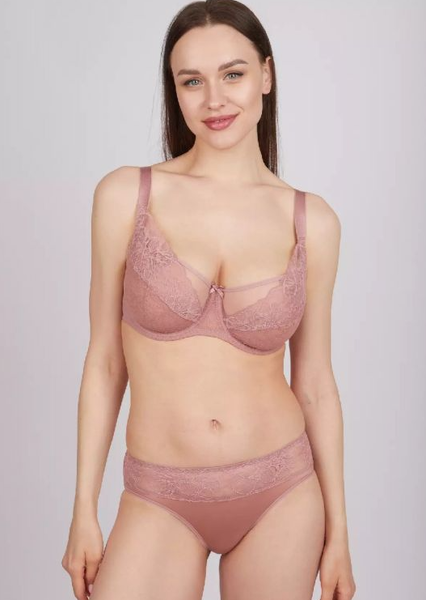 М'який мереживний бюстгальтер 124970 Milavitsa. М'які чашки на кістках виконані з мережива і сітки. Мереживні деталі чашки переходять у бретель. Бретелі не знімні, регулюються за довжиною. Верхній зріз чашки оброблений делікатною еластичною окантовкою, забезпечуючи гарне прилягання до грудей. Стан виконаний з пружного еластичного полотна.