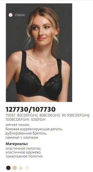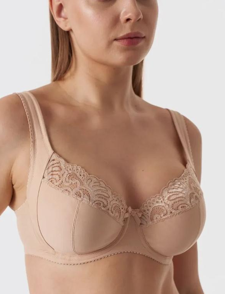 М'який бюстгальтер із мереживом 107730 Milavitsa. Бюстгальтер виконаний з еластичного трикотажного полотна та еластичного мережива. На каркасах. М'яка чашка з бічною коригувальною деталлю і бавовняною підкладкою. Широка дубльована бретель, регульована, незнімна.
