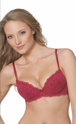 Бюстгальтер «пуш-ап» из эластичного кружева и эластичного трикотажного полотна. На каркасах. Чашки на дубляже с хлопком, с объемными вкладышами. Отделка – бантик макраме.