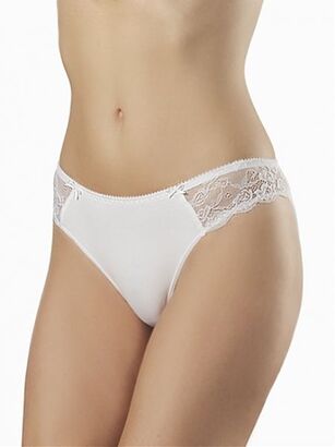 Трусы Милавица 25780: Трусы «слип» из эластичного трикотажного хлопкового полотна и эластичного кружева. Средняя линия талии. Отделка – бантики.