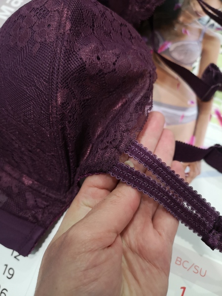 бюстгальтер на каркасах, неэластичное кружево, чашки на дубляже с хлопком. Упругие пластины в боковых деталях стана