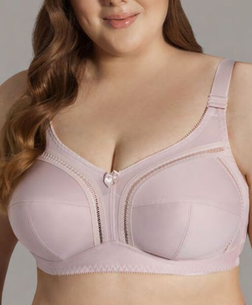 Бюстгальтер из неэластичного и эластичного трикотажных полотен. Без каркасов. Детали чашек на подкладке из тканого хлопкового полотна. Отделка тесьма с эффектом "мережки".