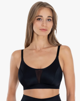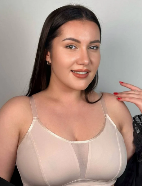 Ідеальний класичний безкаркасний бюстгальтер-топ, без підкладки. V-подібна сітка-вставка спереду. Регульовані бретелі. Чашки з подвійного нееластичного трикотажу. Зручний як для повсякденного життя, так і для занять спортом.