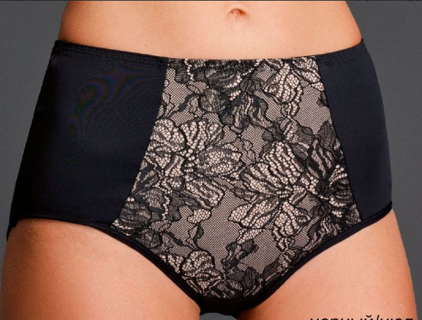 Високі трусики сліпи з мереживом 268070 Milavitsa. Трусики сліпи з високою лінією талії. Виконані з еластичного трикотажного полотна, на передній деталі вставка з нееластичного мереживного полотна з бавовняною підкладкою. Нижні зрізи оброблені плоским швом.